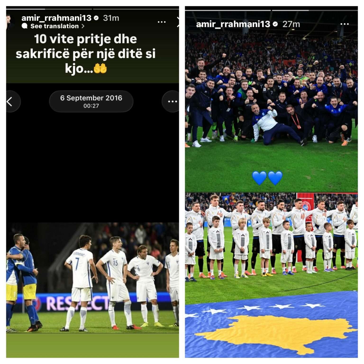 “10 vite pritje dhe sakrificë për një ditë si kjo…”, shkroi kapiteni i Kombëtares, duke e kujtuar rrugëtimin e vështirë për të ardhur deri këtu, që nga pranimi në UEFA e në FIFA në vitin 2016.