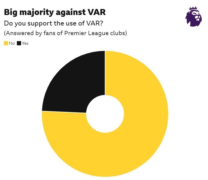 Gati 8 mijë tifozë morën pjesë në sondazh, i cili përfshiu përkrahës nga të 20 skuadrat e elitës këtë sezon. Nga të anketuarit, 90% nuk pajtohen se futja e VAR-it e ka përmirësuar përvojën në stadium, ndërsa 91% besojnë se ka dëmtuar spontanitetin e festimeve të golave.