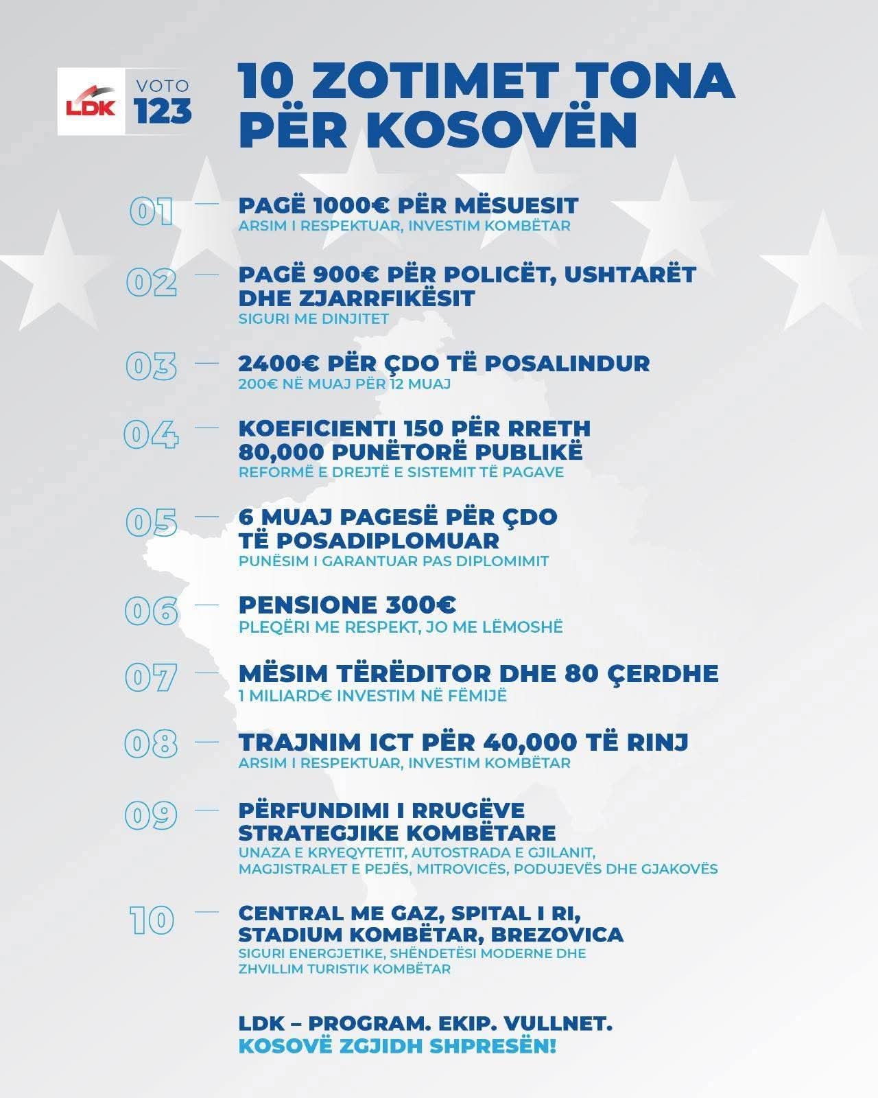Prandaj, ju bëj thirrje të gjithëve – të rinj e të moshuar, gra e burra, biznese e profesionistë – të bashkohemi dhe më 28 dhjetor t’i japim Kosovës një qeveri normale, të përgjegjshme dhe të drejtuar nga LDK-ja. Unë, në Kuvendin e Kosovës, do të jem urë bashkëpunimi, gjithmonë në interes të Kosovës dhe qytetarëve të saj.
