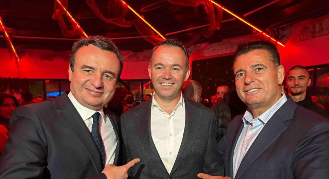 Në fotografi Bahtiri e Kurti shihen me gishtat tregues drejtuar kah Faton Peci.