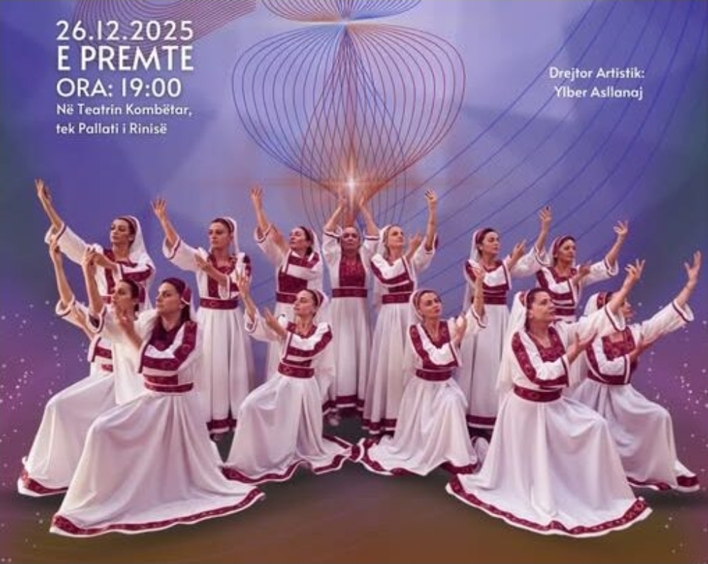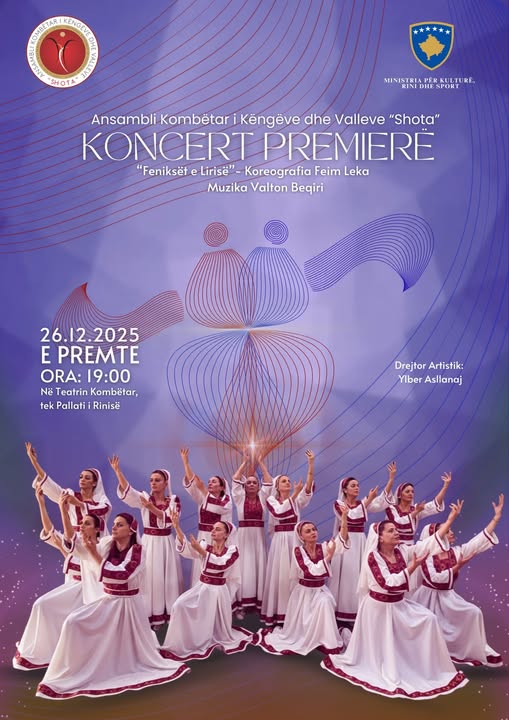 Në Teatrin Kombëtar (Pallati i Rinisë në Prishtinë), sonte nga ora 19:00, Ansambli Kombëtar i Këngëve dhe Valleve “Shota” vjen me koncertin premierë të fundvitit, duke sjellë një program artistik që përmbledh vlerat më të mira të traditës dhe artit kombëtar.
