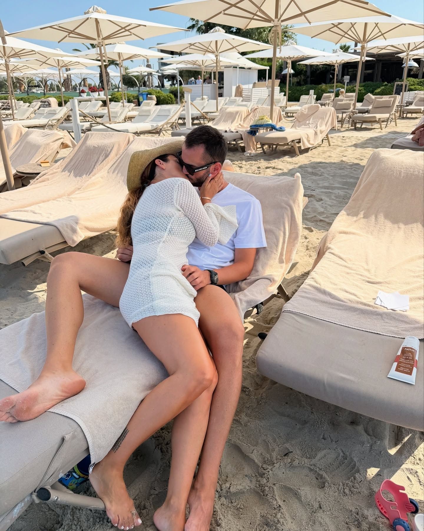 Të përqafuar në një shezlong buzë detit, çifti duket i përfshirë në një puthje plot dashuri – një dëshmi se lidhja e tyre vazhdon të jetë po aq e fortë dhe e ngrohtë sa në fillimet e saj.