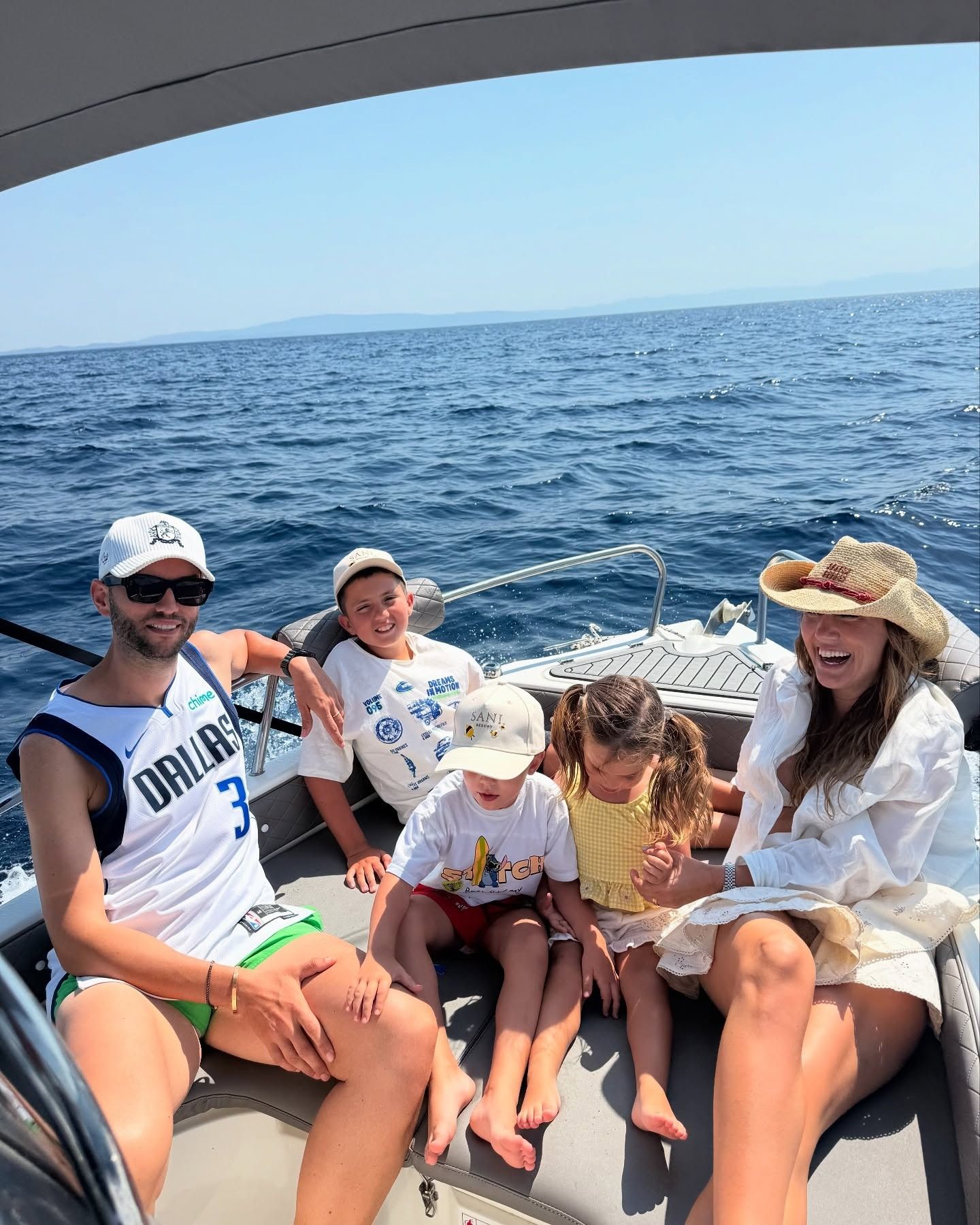 Fotografia e dytë sjell një atmosferë më familjare dhe argëtuese. Arbana dhe Eduardi janë në një varkë së bashku me tre fëmijët e tyre, ku të gjithë shfaqen të buzëqeshur dhe të relaksuar nën rrezet e diellit dhe freskinë e detit.