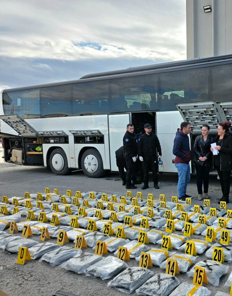 Gjatë kontrollit në automjet, hetuesit e Drejtorisë për Hetimin e Trafikimit me Narkotikë, në koordinim me Prokurorinë Speciale, kanë gjetur dhe sekuestruar një sasi të madhe narkotikësh, që dyshohet të jetë rreth 120 kilogramë.