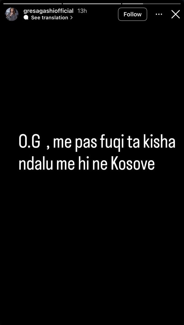 Gresa shkroi: “O.G, me pas fuqi ta kisha ndalu me hi në Kosovë”.