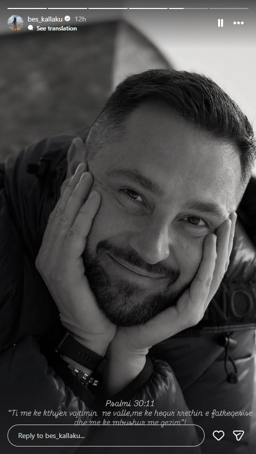 Përmes një fotografie bardhë e zi, ku duket i qetë dhe duke buzëqeshur, ai ka cituar Psalmin 30:11: “Ti më ke kthyer vajtimin në valle, më ke hequr rrethin e fatkeqësisë dhe më ke mbushur me gëzim!”