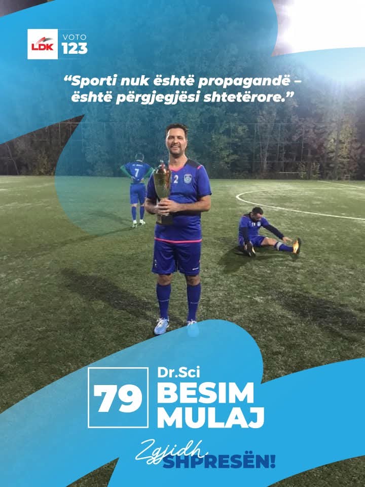 Kandidati i LDK, Besim Mulaj, thitë se 26 vjet pas luftës, sporti në Kosovë vazhdon të trajtohet më shumë si mjet propagande sesa si sektor me rëndësi strategjike për zhvillimin e vendit. Edhe pse sportistët tanë shpesh quhen ambasadorë të shtetit, investimet konkrete në sport mbeten minimale dhe pa vizion afatgjatë.