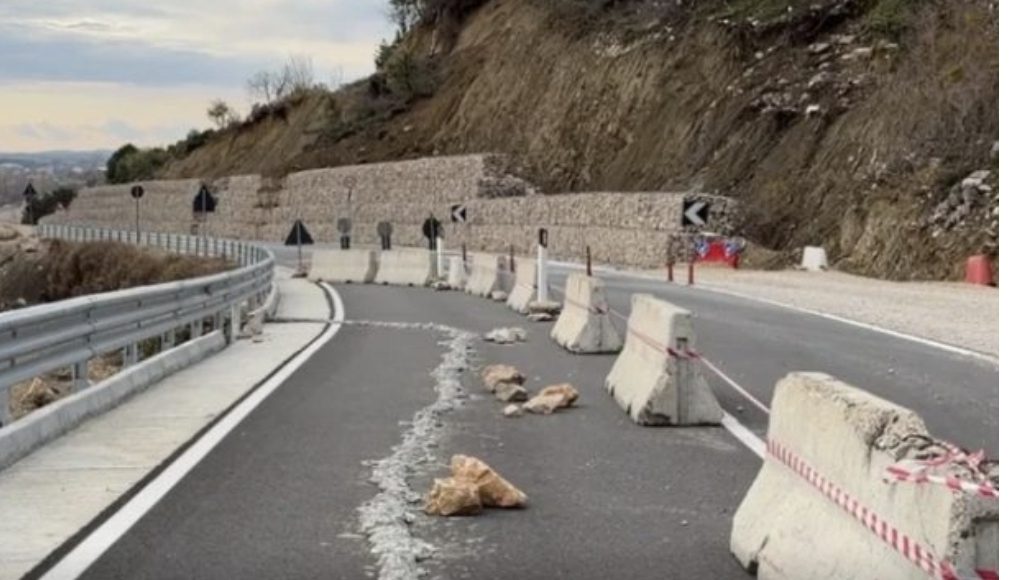 Për shkak të një rrëshqitjeje të dherave, një pjesë e gjatësisë së rrugës Shëngjin–Velipojë, në afërsi të fshatit Rrjoll, ka pësuar çarje të theksuara dhe paraqet rrezik real për shembje të plotë, ka raportuar Top Channel.