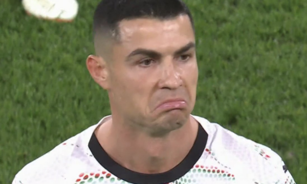 Gjatë daljes nga fusha e gjelbër Ronaldo u pa i pakënaqur dhe ngriti dy gishta lartë në shenjë aprovimi për gjyqëtarin e ndeshjes për vendimin që morri.