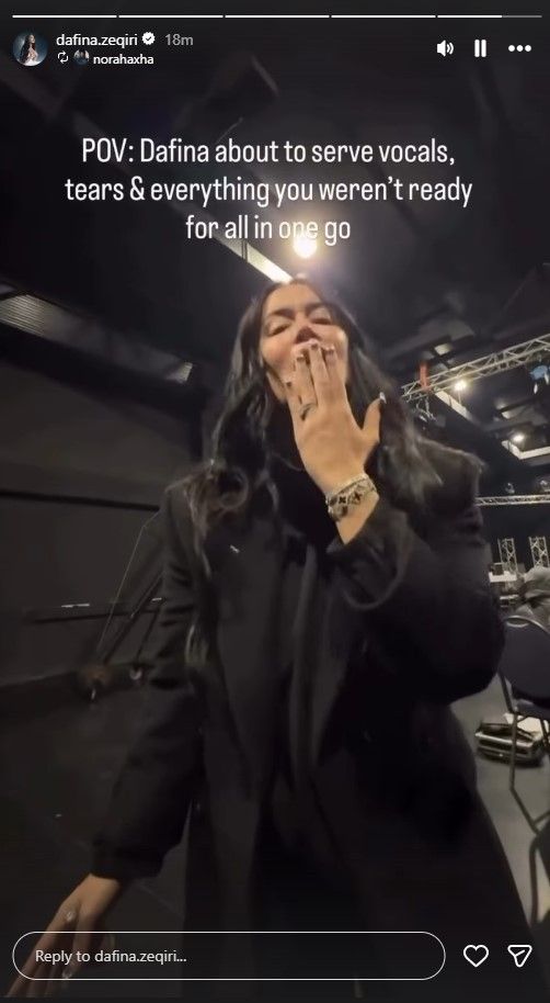 Ai ka publikuar në InstaStory një video të Dafinës teksa po ushtron vokalet para performancës së shumëpritur.