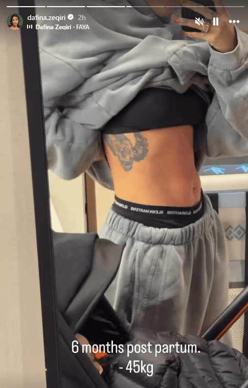 Në përshkrimin e postimit, Dafina ka zbuluar se kanë kaluar gjashtë muaj nga lindja dhe se ka arritur të humbasë 45 kilogramë.