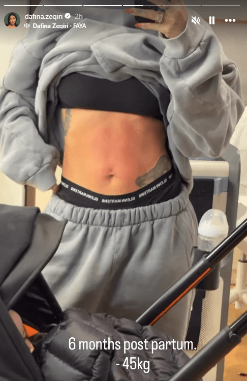 Këngëtarja e njohur, Dafina Zeqiri, ka tërhequr vëmendjen e ndjekësve në rrjetet sociale me një postim të fundit në Instagram, ku ka ndarë një foto para pasqyrës, duke treguar fizikun e saj pas lindjes.