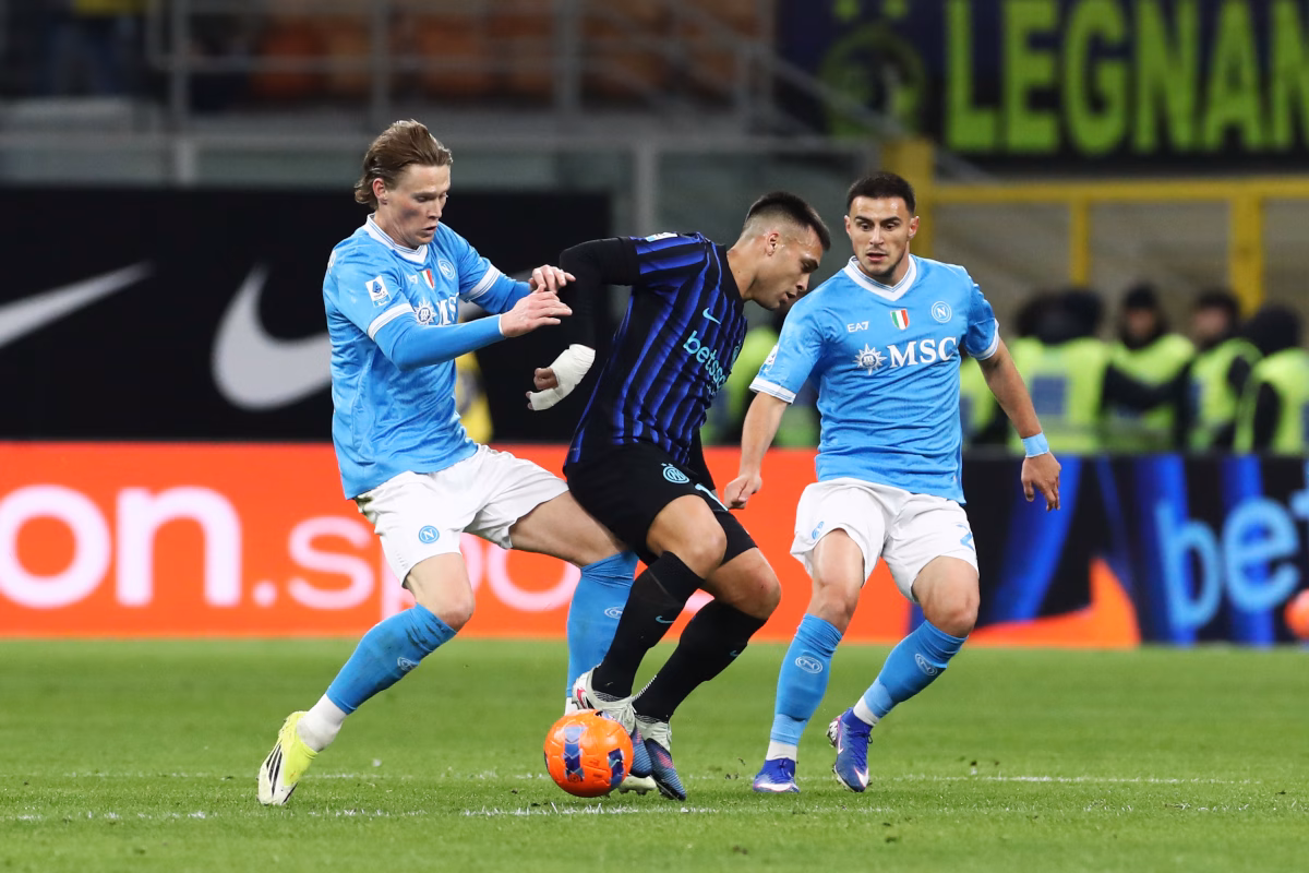 Federico Dimarco zhbllokoi rezultatin në minutën e 9-të, duke kaluar Interin në epërsi por Napoli reagoi me anë të mesfushorit Scott McTominay që barazoi shifrat në minutën e 26-të.