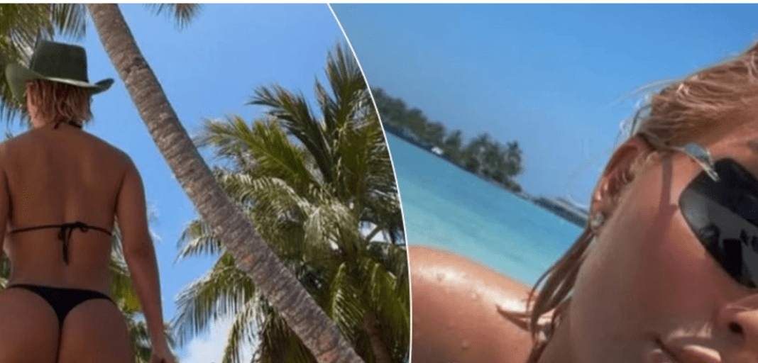Në njërën nga fotografitë që ka publikuar, Dolce shfaqet duke ecur në një ambient tropikal me palma, ku vë në pah fizikun e saj të tonifikuar.