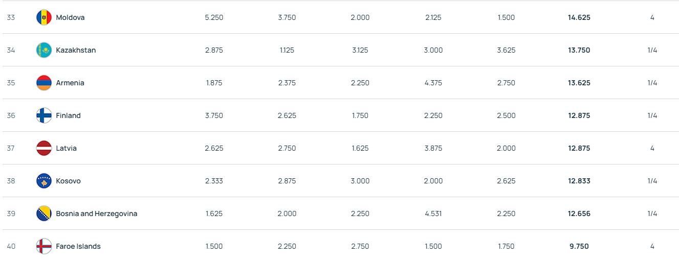 Ky barazim, ka ndikuar edhe në ngritjen e Kosovës në renditjen e UEFA-s, duke u pozicionuar në vendin e 38-të, transmeton Klankosova.tv.