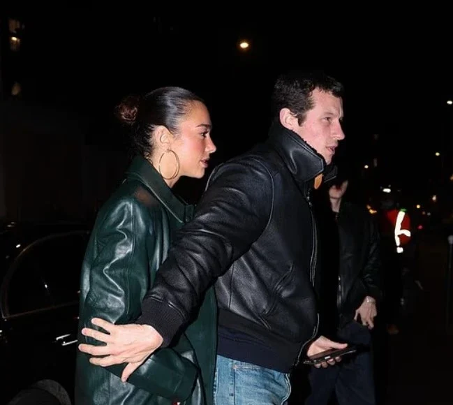 Pamjen e kompletoi me çizme të larta ngjyrë kafe me gëzof, një pallto të gjatë lëkure në ngjyrë jeshile të errët dhe një çantë Chanel, ndërsa Callum u shfaq më minimalist, me xhinse blu dhe një xhaketë bomber të zezë prej lëkure.