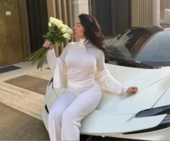 Në një foto ajo pozoi me një buqetë me lule në dorë, ndërsa ishte ulur sipër një supermakine Ferrari.