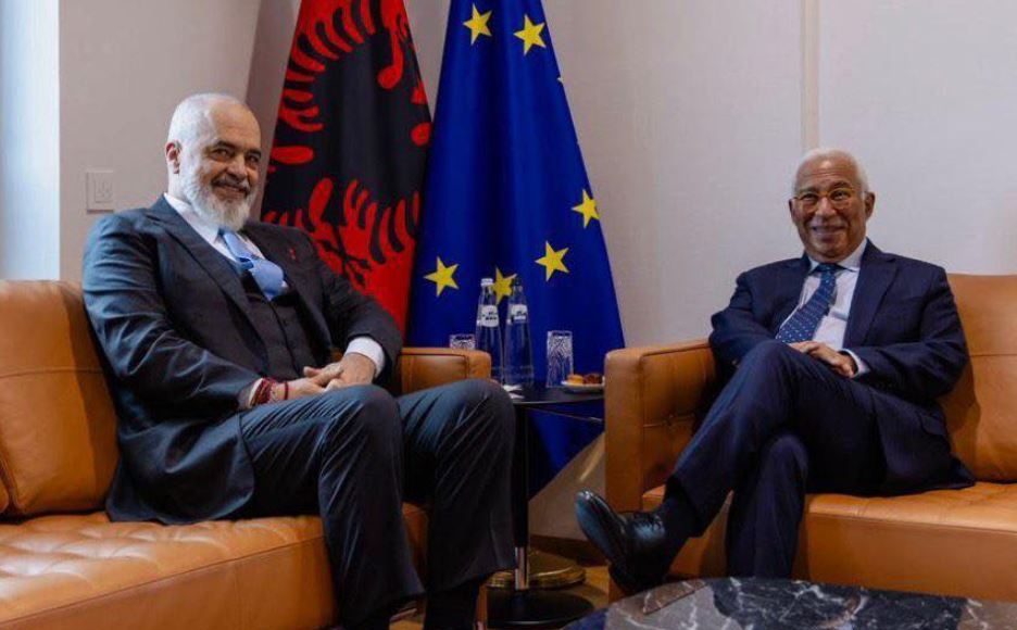 Nga atje, përmes rrjetit social Facebook, Rama ka ndarë disa foto me presidentin Këshillit Evropian, Antonio Costa.