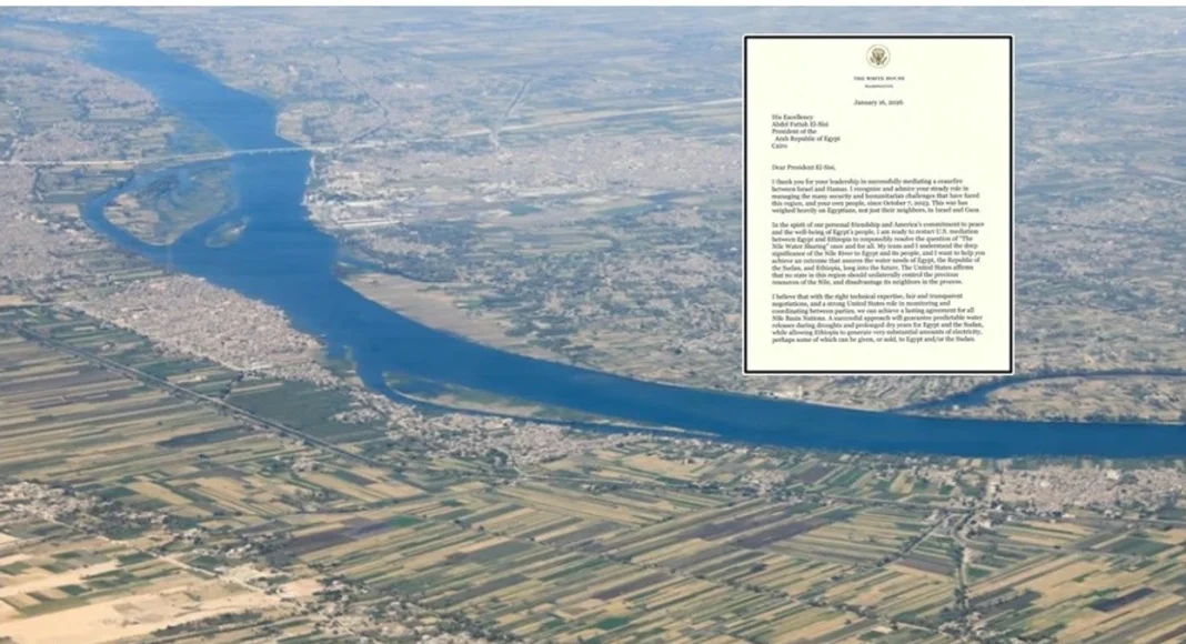 “Jam i gatshëm të rinis ndërmjetësimin amerikan mes Egjiptit dhe Etiopisë për ta zgjidhur në mënyrë të përgjegjshme dhe përfundimtare çështjen e ‘ndarjes së ujërave të Nilit’”, shkroi Trump në një letër drejtuar presidentit egjiptian Abdel Fattah al-Sisi, e cila u publikua gjithashtu në llogarinë e tij në rrjetin social Truth Social.