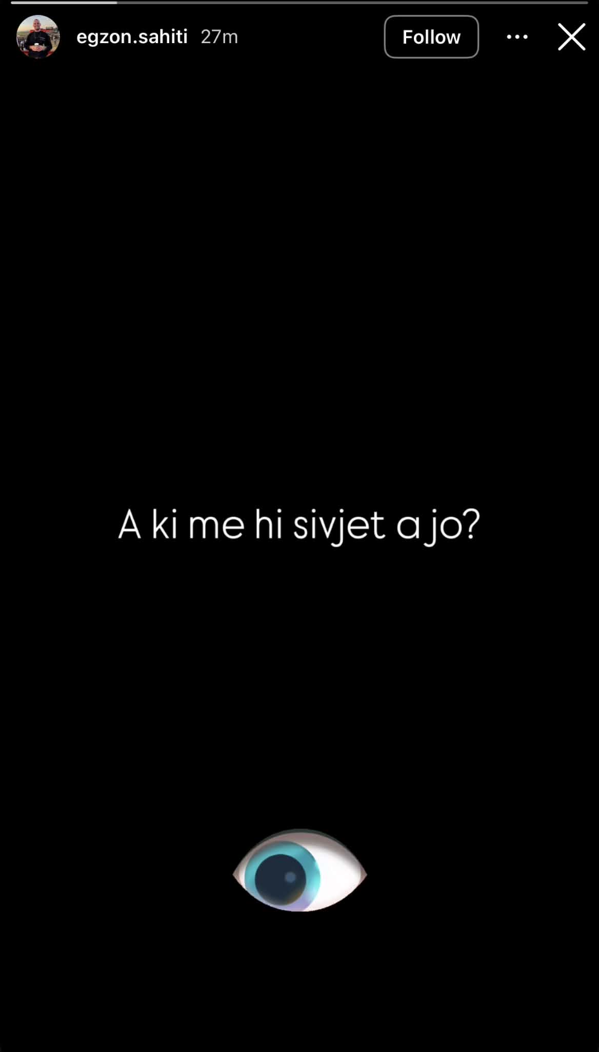 Ai ka postuar një foto të zezë në Instagram, të cilës ia ka bashkuar një sy që ngjan me atë të “vëllait të madh”, duke shkruar: “A ki me hi sivjet a jo?”.