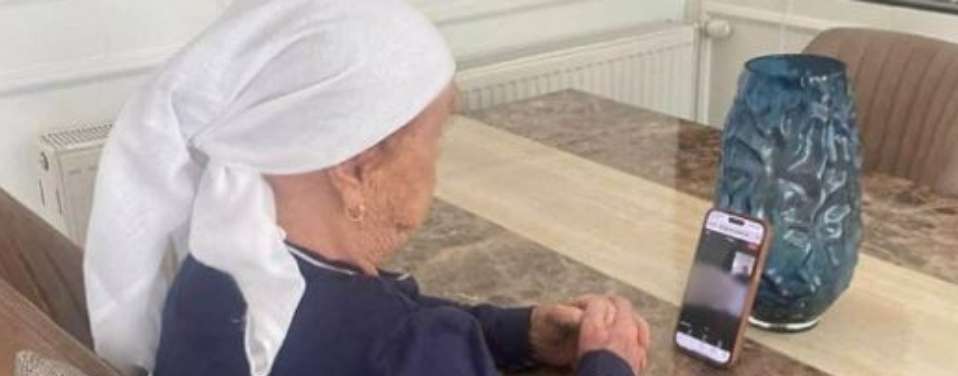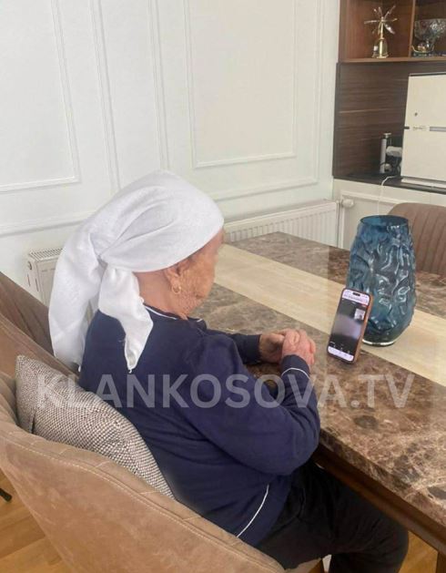 Në fotografinë e siguruar nga Klankosova.tv, shihet nëna e Hashim Thaçit teksa bisedon me të birin përmes një video telefonate.