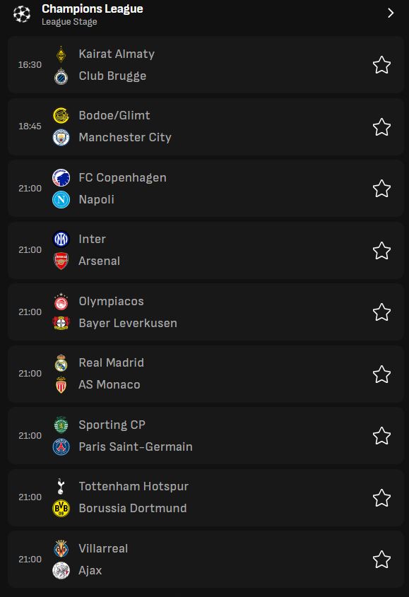 Spektakël pritet edhe në takime të tjera, ku Manchester City, Paris Saint-Germain, Napoli, Borussia Dortmund dhe klube të tjera të njohura evropiane do të zbresin në fushë me objektivin e qartë: fitoren.