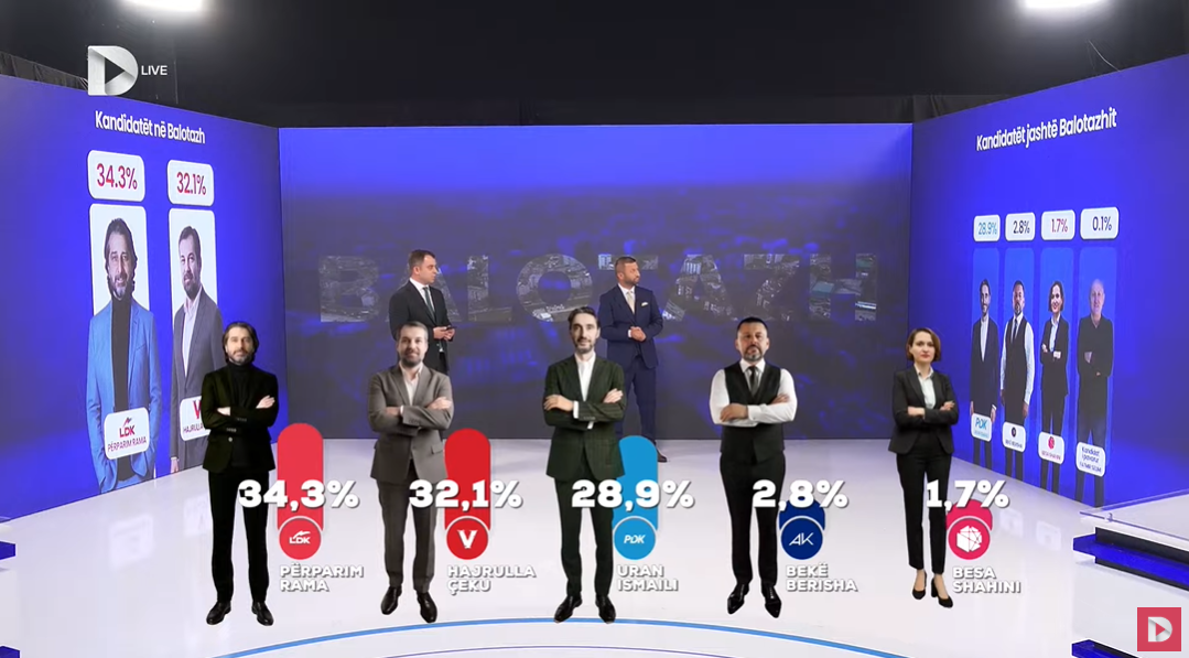 Exit Poll-i i realizuar nga UBO Consulting dhe prezantuar ekskluzivisht në emisionin “Debat Plus” në TV Dukagjini tregon se gara për kryetar të Prishtinës pritet të shkojë në balotazh, mes kandidatit të LDK-së, Përparim Rama, dhe kandidatit të Lëvizjes Vetëvendosje (LVV), Hajrullah Çeku.