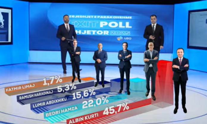 Rezultatet e Exit Poll-it të UBO-s në TV Dukagjini për zgjedhjet parlamentare tregojnë një epërsi të qartë të Lëvizjes Vetëvendosje dhe kandidatit të saj, Albin Kurti, i cili prin bindshëm.