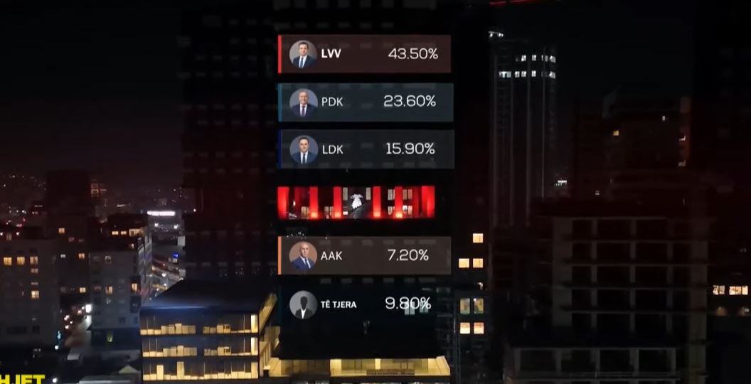 Exit Poll në T7: VV 43.5%, PDK 23.6%, LDK 15.9%, AAK 7.2%