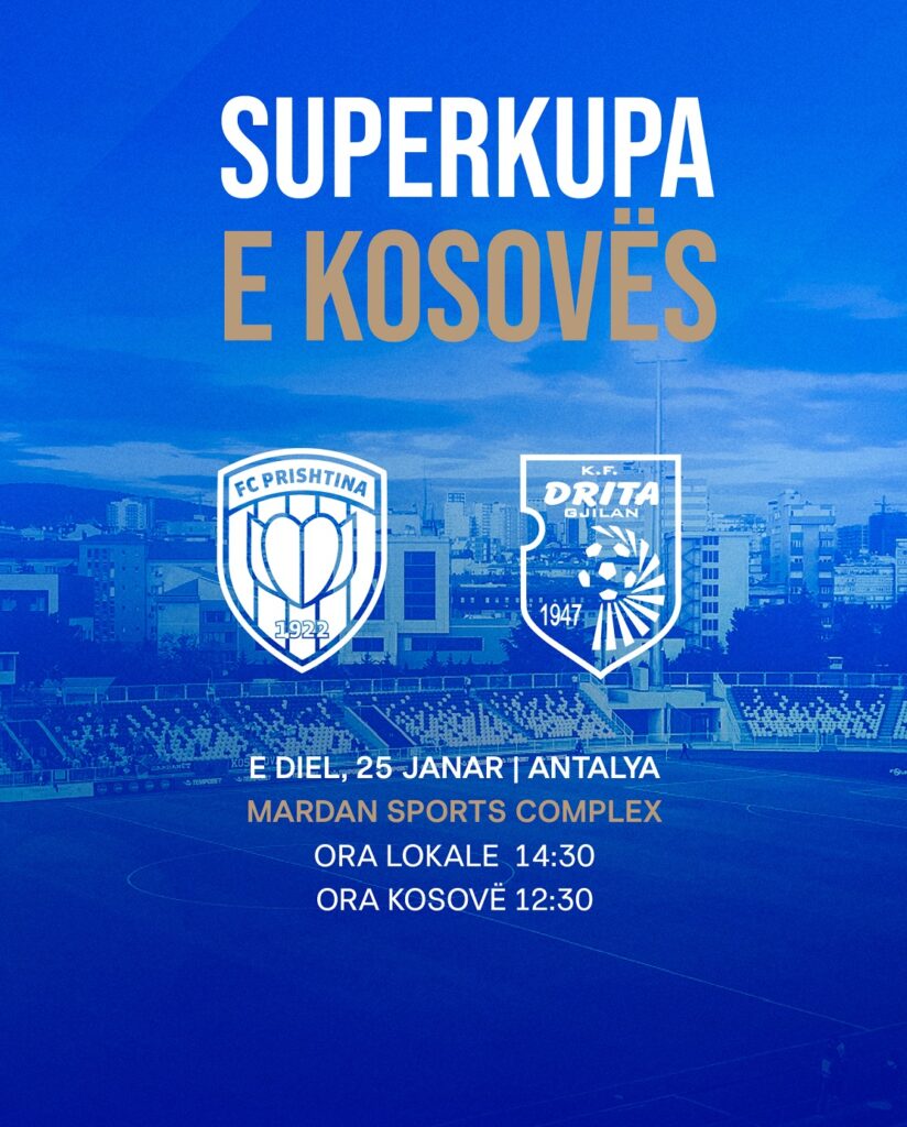 Finalja e Superkupës së Kosovës zhvillohet këtë të diel, më 25 janar 2026, me ndeshjen mes FC Prishtinës dhe FC Dritës.
