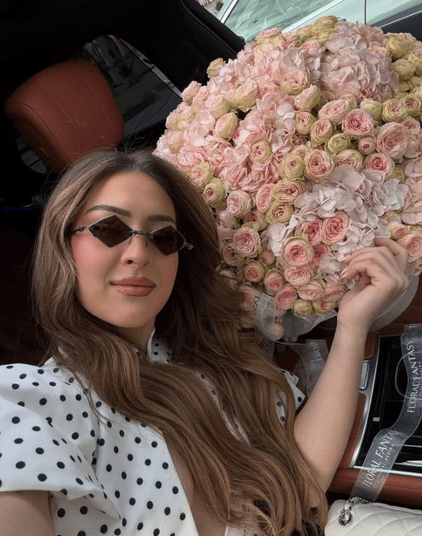 Fotografia që shoqëron postimin e tregon Françeskën duke pozuar nga makina me një buqetë të madhe me trëndafila, një detaj që ka ndezur spekulimet për një lidhje të mundshme pas ndarjes nga partneri i mëparshëm.