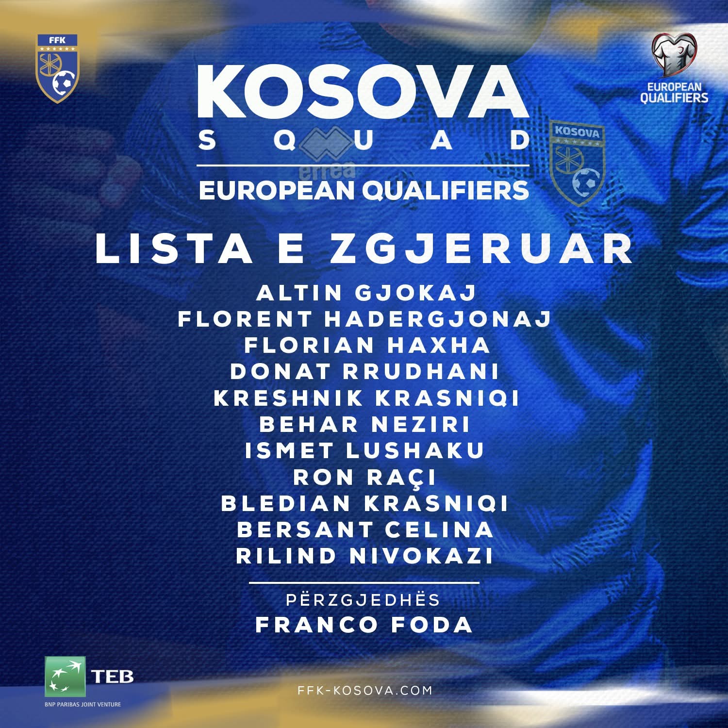 Përzgjedhësi i Kombëtares së Kosovës, Franco Foda ka publikuar listën e lojtarëve të grumbulluar për dy ndeshjet e fundit kualifikuese të Kupës së Botës 2026 ndaj Sllovenisë, më 15 nëntor dhe Zvicrës, më 18 nëntor.