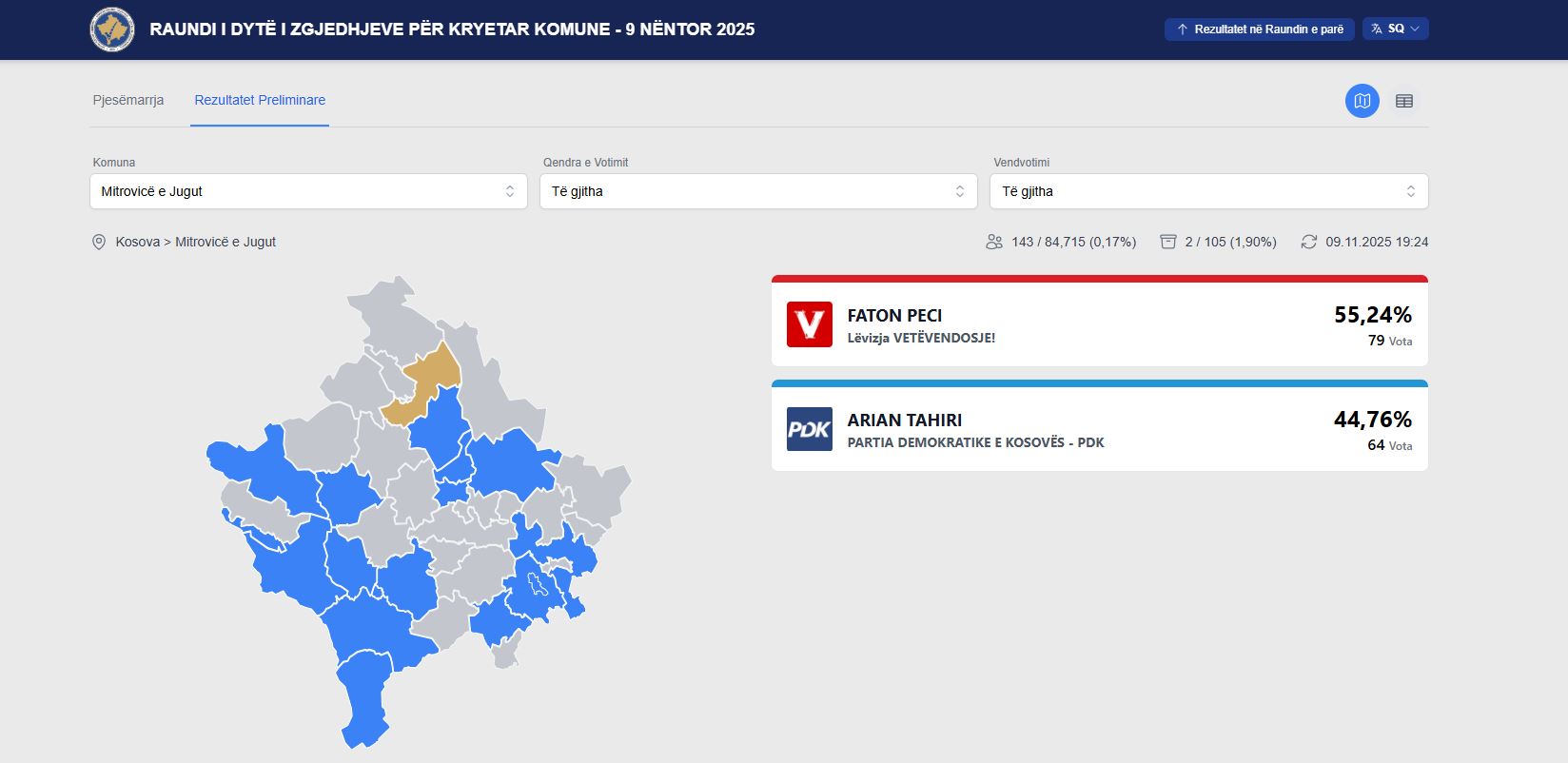 Deri tani atje janë numëruar vetëm 2 vendvotime, apo 143 vota nga 84 mijë e 715 vota.
