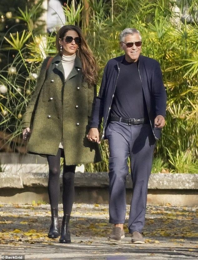 Ai kishte zgjedhur një palë këpucë të rehatshme, ndërsa Amal ishte veshur me një pallto jeshile shumë stil.