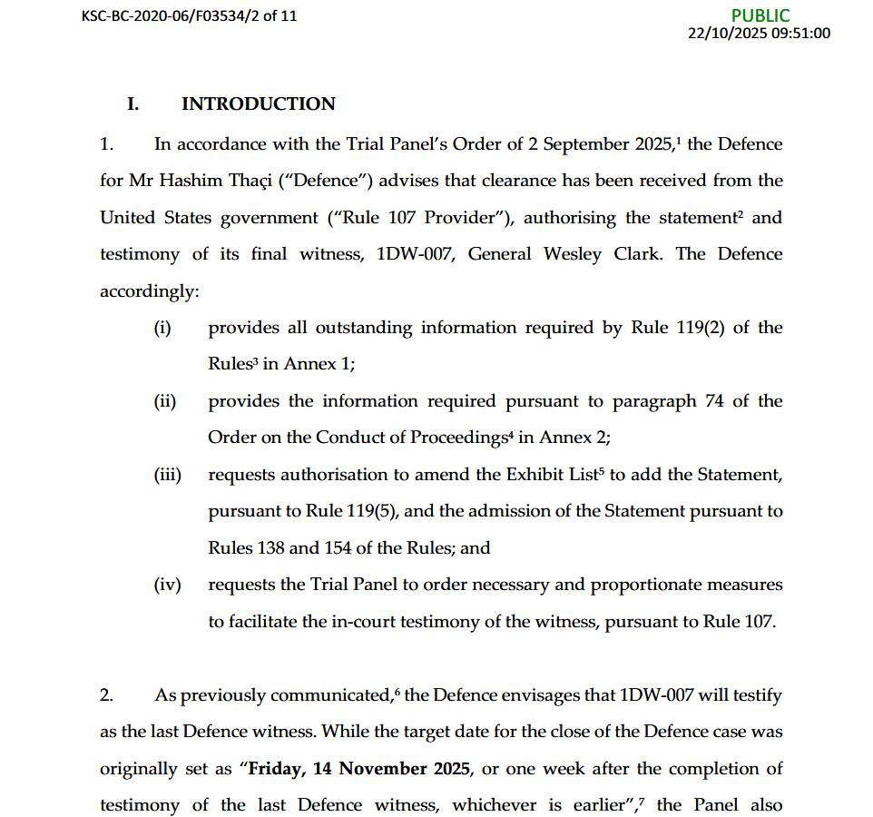 Wesley Clark, ish-Komandanti i Aleancës më të fuqishme ushtarake që ka njohur bota, NATO-s, gjatë kohës së luftës në Kosovë, është konfirmuar edhe zyrtarisht si dëshmitar i mbrojtjes në gjyqin kundër ish-krerëve të UÇK-së në Hagë.