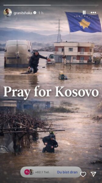 “Lutu për Kosovën”, shkroi futbollisti kosovar në Instastory derisa këtij shkrimi ia përcolli fotot me gjendjen aktuale alarmante në Kosovë.