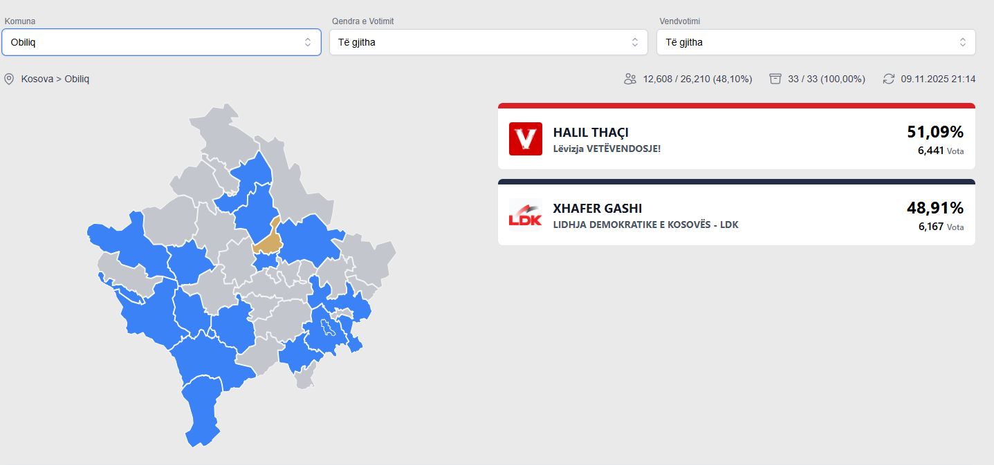 Në komunën e Obiliqit, janë numëruar të gjitha votat.