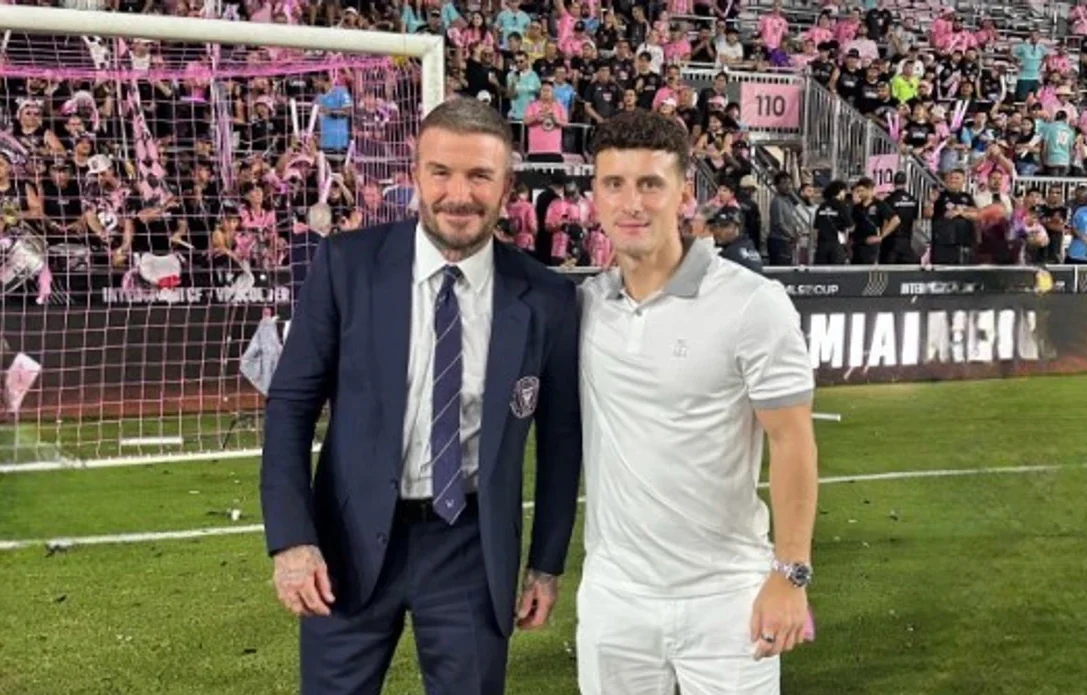Përpos fotove me Picaultin, Shala ka shtuar edhe një foto me legjendën e Manchester Unitedit, tani presidenti i Inter Miamit, David Beckham.