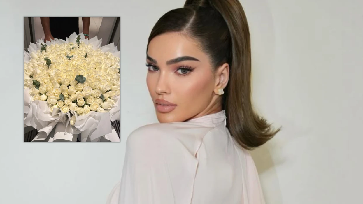 Ajo është befasuar me një buqetë të madhe me trëndafila të bardhë, duke shkaktuar menjëherë reagime të shumta në rrjetet sociale.