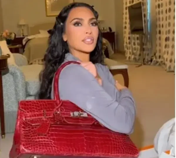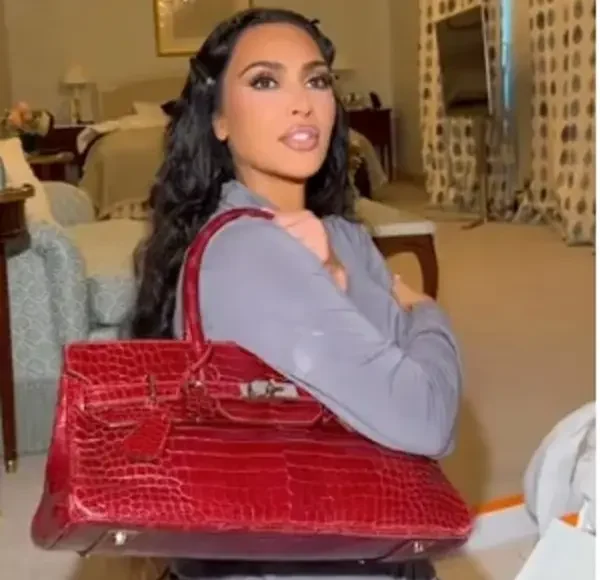 Në video, Kim tregon fillimisht një çantë të rrallë Hermes Birkin prej lëkure krokodili të kuq, e dizajnuar nga Jean Paul Gaultier, që thuhet se kushton deri në rreth 187 mijë euro.