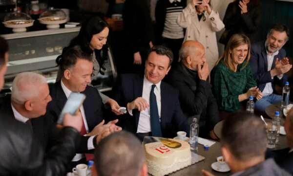 Kurti feston 51-vjetorin në Mitrovicë, surprizohet me tortë në formë zemre me portretin e tij
