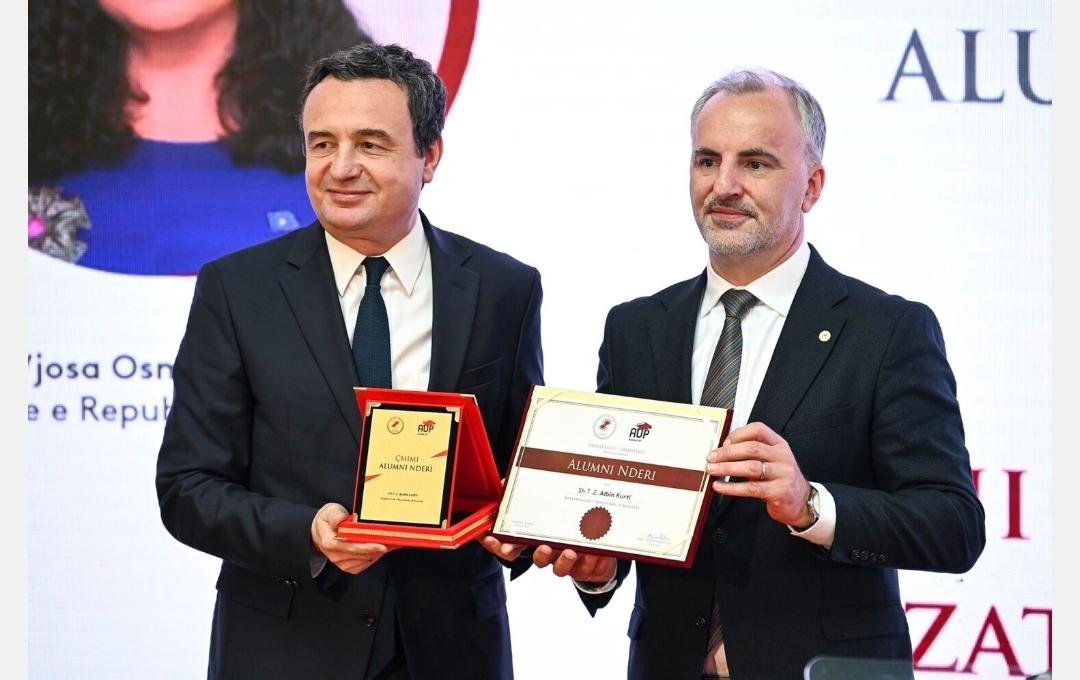 Kryeministri në detyrë i Kosovës, Albin Kurti, gjatë ditës së djeshme është nderuar me çmimin “Alumni i Nderit” nga Universiteti i Prishtinës “Hasan Prishtina”.