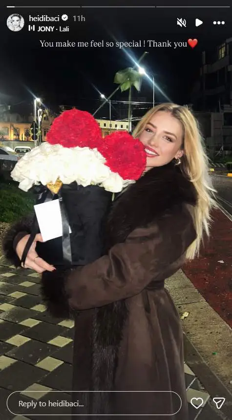 “Ti më bën të ndjehem e veçantë! Faleminderit”, ka shkruar Heidi mbi një nga postimet, duke mos zbuluar identitetin e personit që i ka dërguar dhuratat.