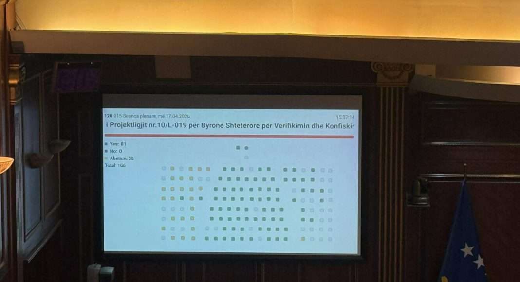 Kuvendi i Kosovës më 81 vota për ka miratuar Projektligjin për Byronë Shtetërore për Verifikimin dhe Konfiskimin e Pasurisë së Pajustifikueshme.