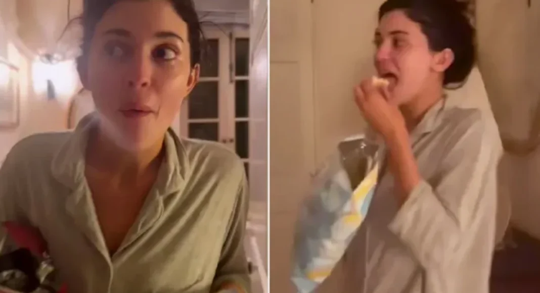 Kylie u shfaq me patatina me duar derisa po i shijonte ato dhe nuk dëshironte t’i ndante me të tjerët.