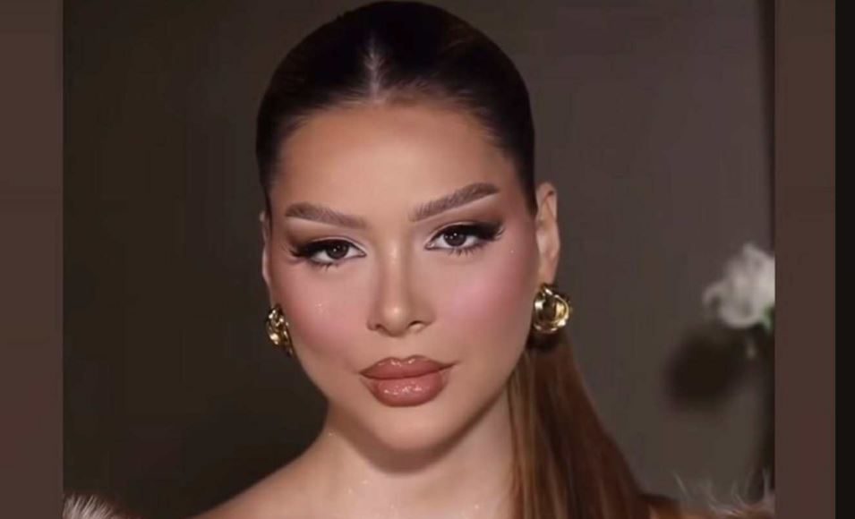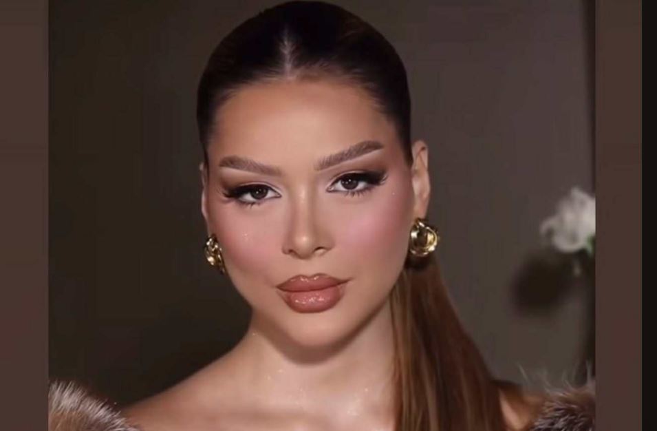 Bukuroshja është shfaqur me një grim të rëndë, që thekson tiparet e saj perfekte dhe i jep një pamje plot shkëlqim e vetëbesim.