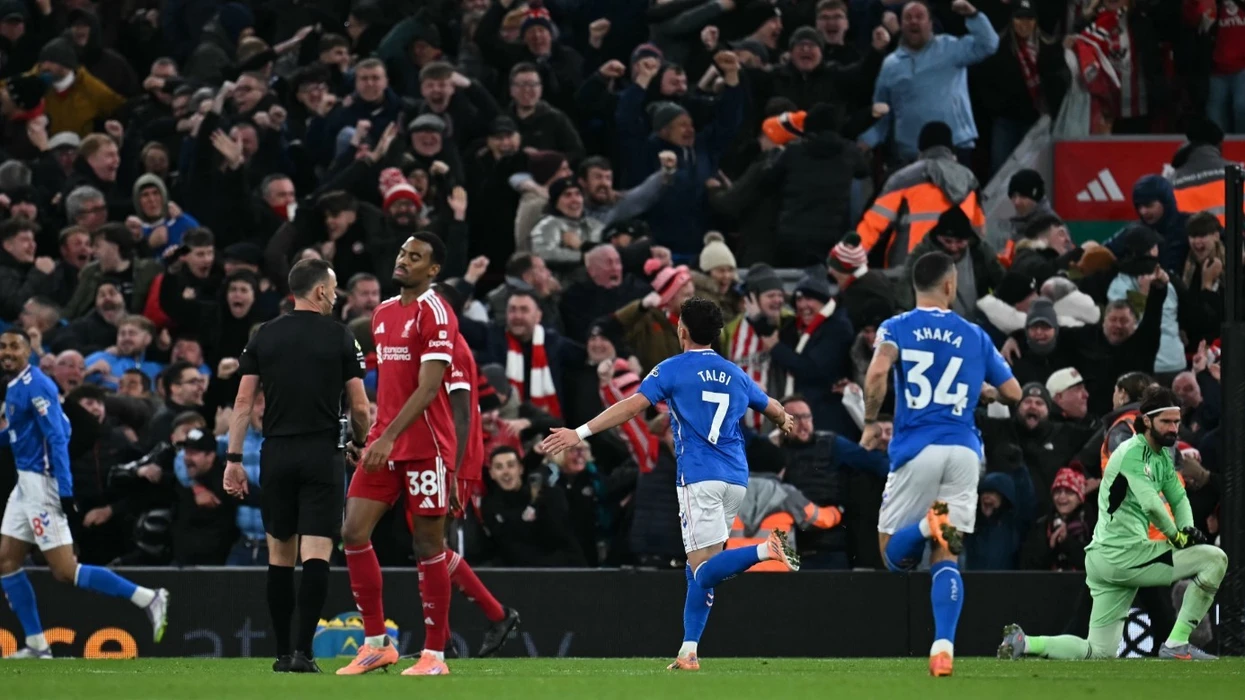 Liverpooli iu afrua golit në minutën e 44-të, por goditja me kokë e Alexis Mac Allister u ndal në shtyllën e majtë.