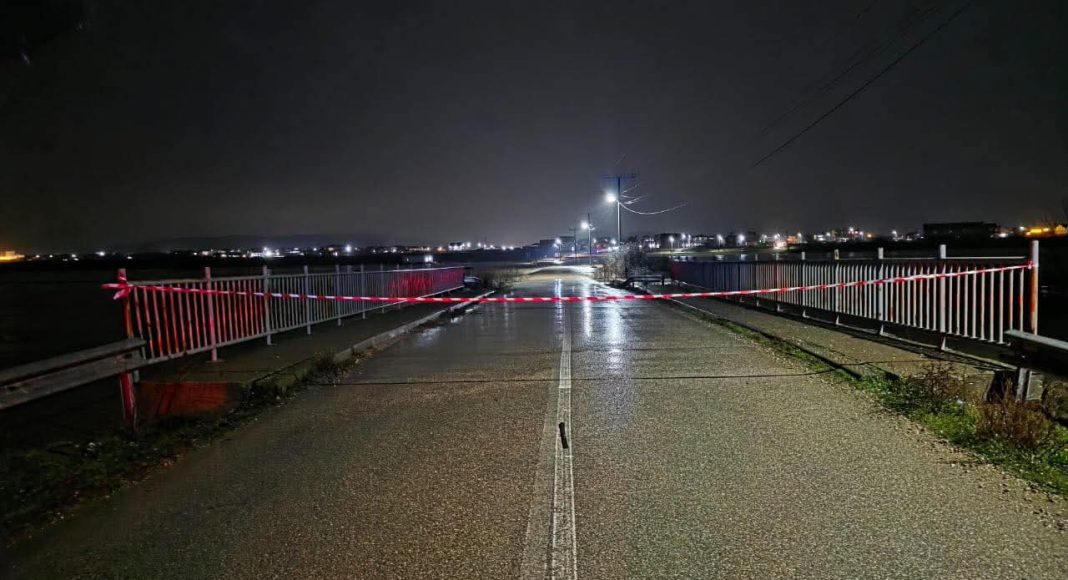 Drejtoria e Emergjencave dhe Policia e Kosovës e kanë bërë kufizimin në rrugë me shirit parandalues pranë urës.