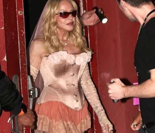 Madonna ka tërhequr vëmendjen në Hollywood-in Perëndimor gjatë festës së lansimit të albumit të saj “Confessions II”, ku u shfaq me një korse rozë dhe vello me dantella.