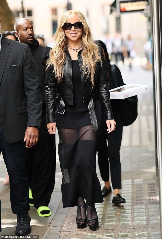 Si gjithmonë një divë e vërtetë, Mariah e kishte kompletuar paraqitjen me syze të mëdha dielli dhe taka shumë të larta.